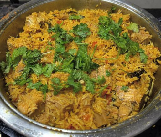 Tender jackfruit pieces simmered with basmati rice, spices, and herbs — Jackfruit Biryani is a vegetarian feast full of aroma and…