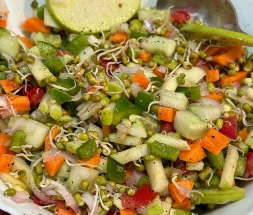 A creamy, colourful salad made with paneer, sprouted green gram, mixed veggies, and coconut — refreshing, protein-packed, and perfect as a…